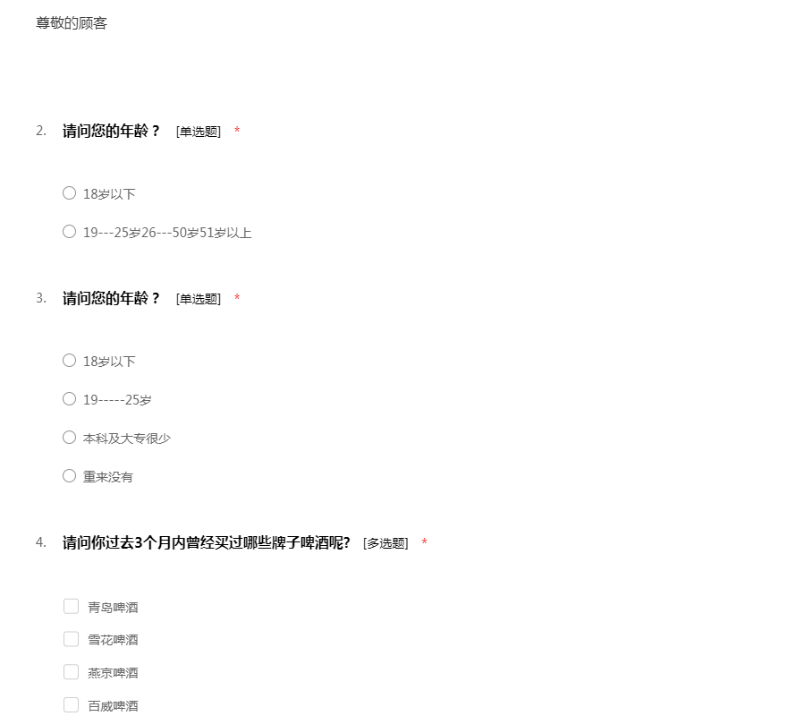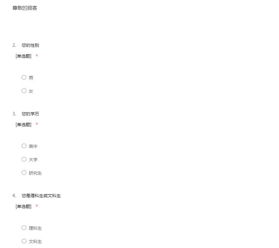 为了了解网络平台个性化定制服务的市场前景,故进行了问卷调查。如果您能最大可能真实得认真填写本卷,我们将不甚感激,答案无所谓对错,不涉及个人隐私,请放心填写!