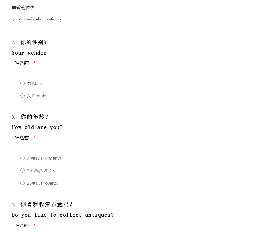 关于古董的问卷调查报告