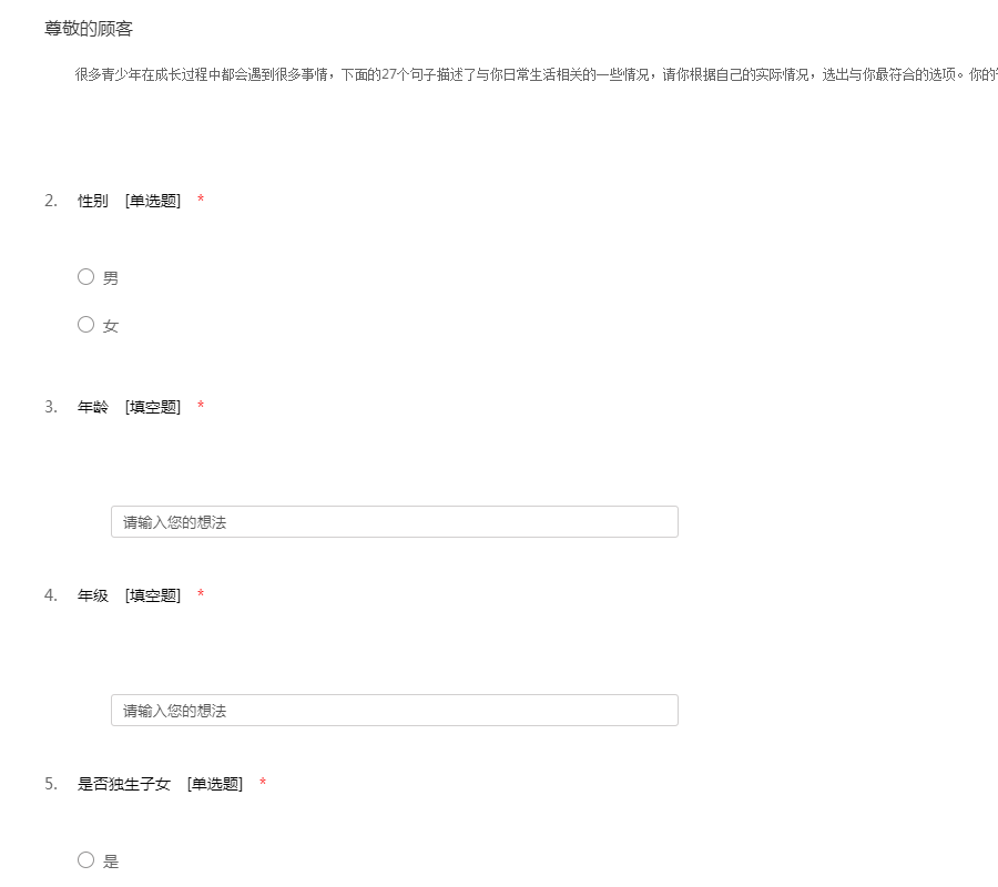 青少年调查表