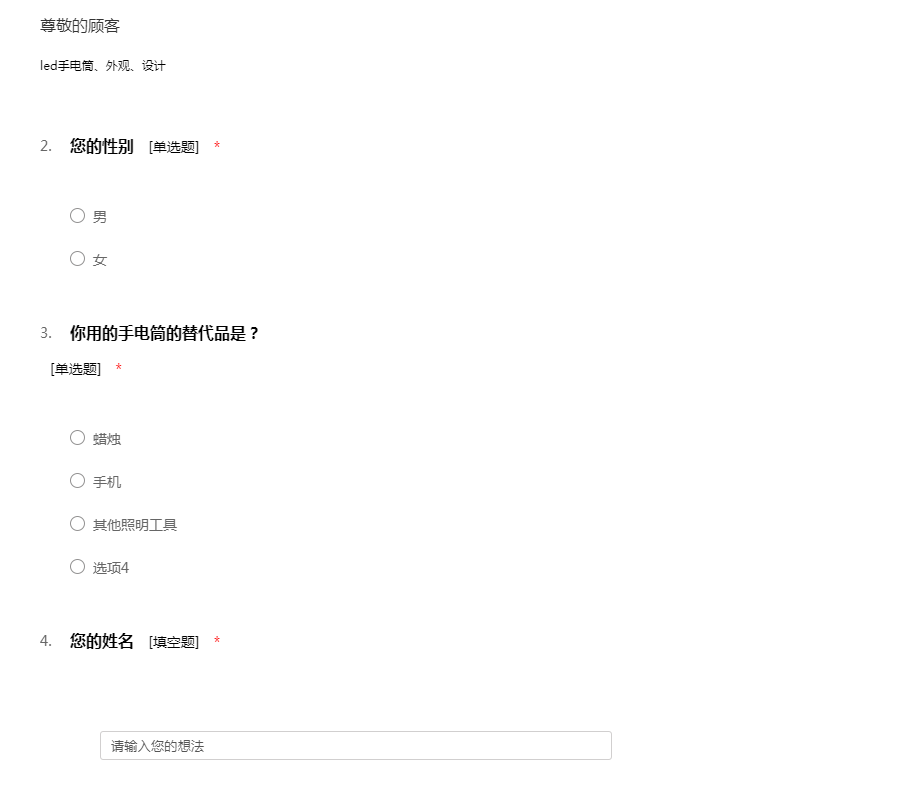 led手电筒调查问卷