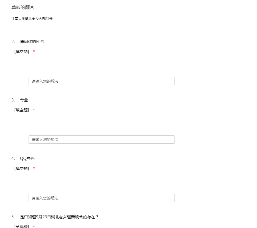 江南大学湖北老乡内部问卷