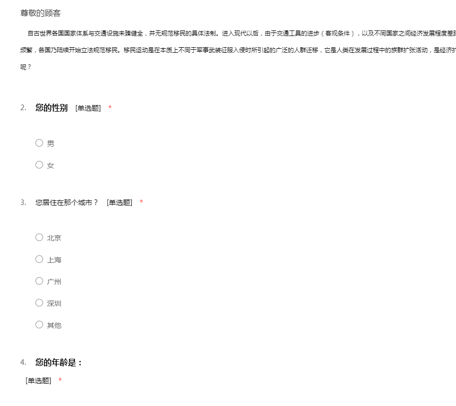 移民调查问卷