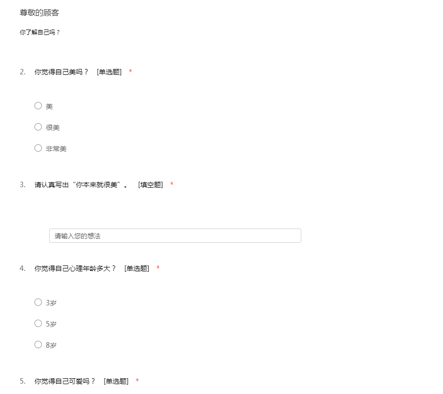 关于了解自身问卷调查