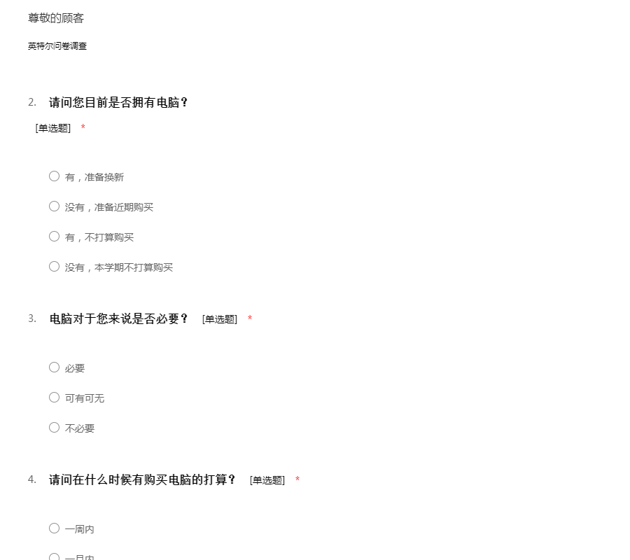 英特尔调研问卷