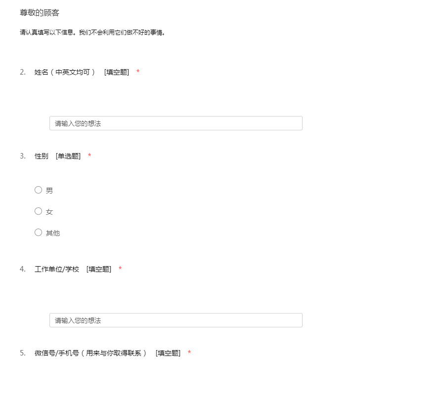请认真填写以下信息。我们不会利用它们做不好的事情。
