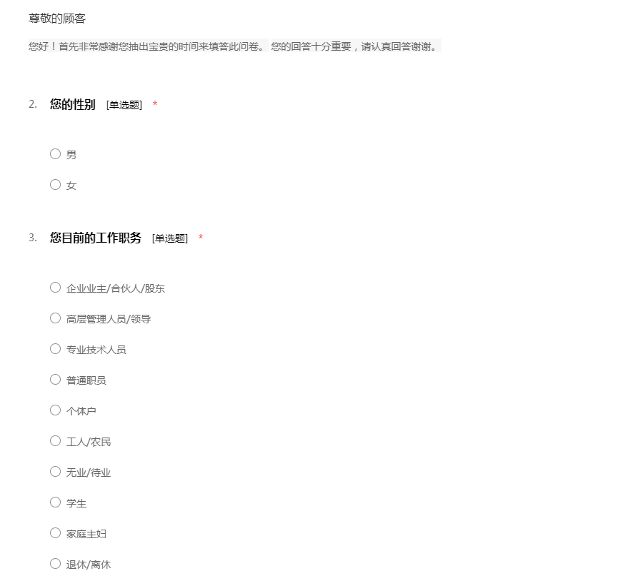 您好!首先非常感谢您抽出宝贵的时间来填答此问卷。 您的回答十分重要,请认真回答谢谢。