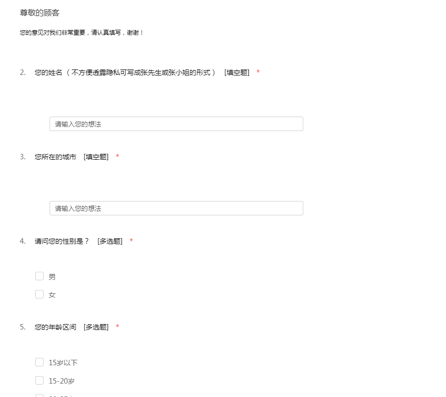 您的意见对我们非常重要,请认真填写,谢谢!