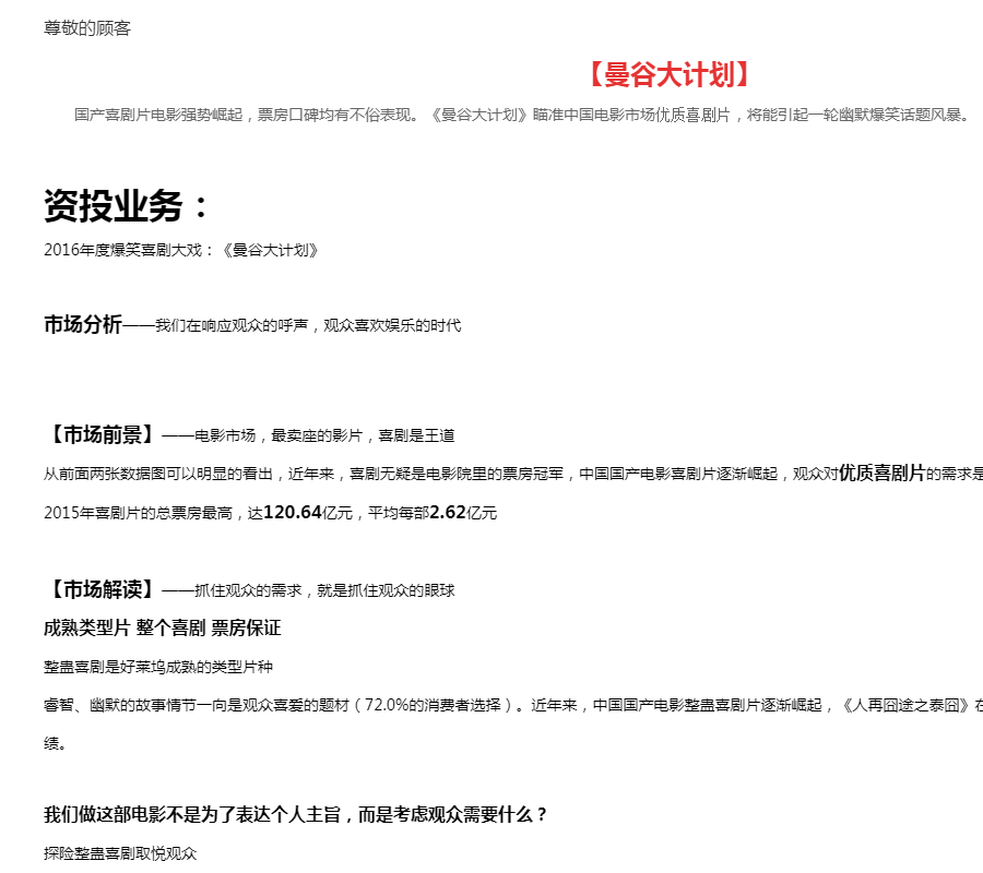 【曼谷大计划】 国产喜剧片电影强势崛起,票房口碑均有不俗表现。《曼谷大计划》瞄准中国电影市场优质喜剧片,将能引起一轮幽默爆笑话题风暴。