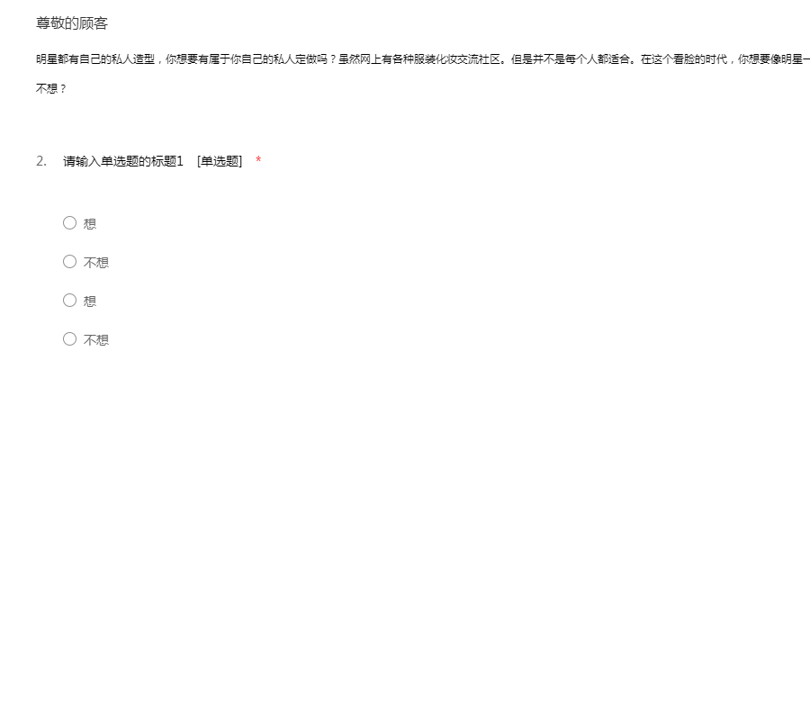 明星都有自己的私人造型,你想要有属于你自己的私人定做吗?虽然网上有各种服装化妆交流社区。但是并不是每个人都适合。在这个看脸的时代,你想要像明星一样有自己的私人定做吗?来参与调查吧!想还是不想?