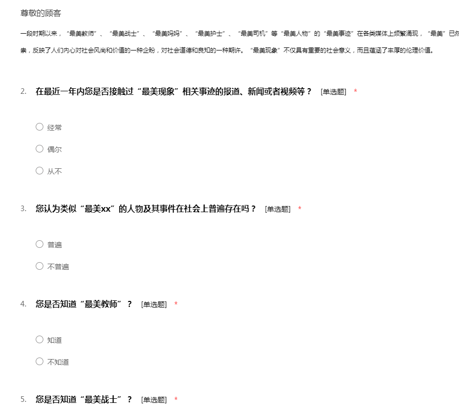 最美现象调查问卷
