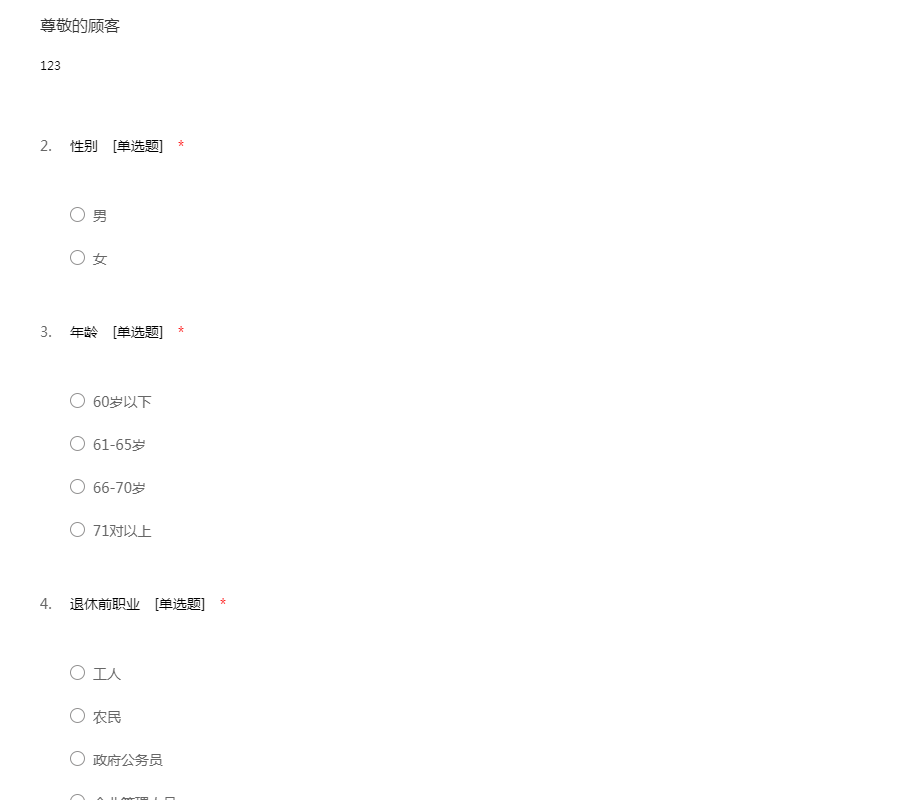 ——您好!非常感谢您能抽出时间来参与我们的调查。我们现在进行一项关于消费观念的问卷,您的建议对我们非常重要。本问卷采取的是不记名烦事,所以请放心填写。感谢您的支持!