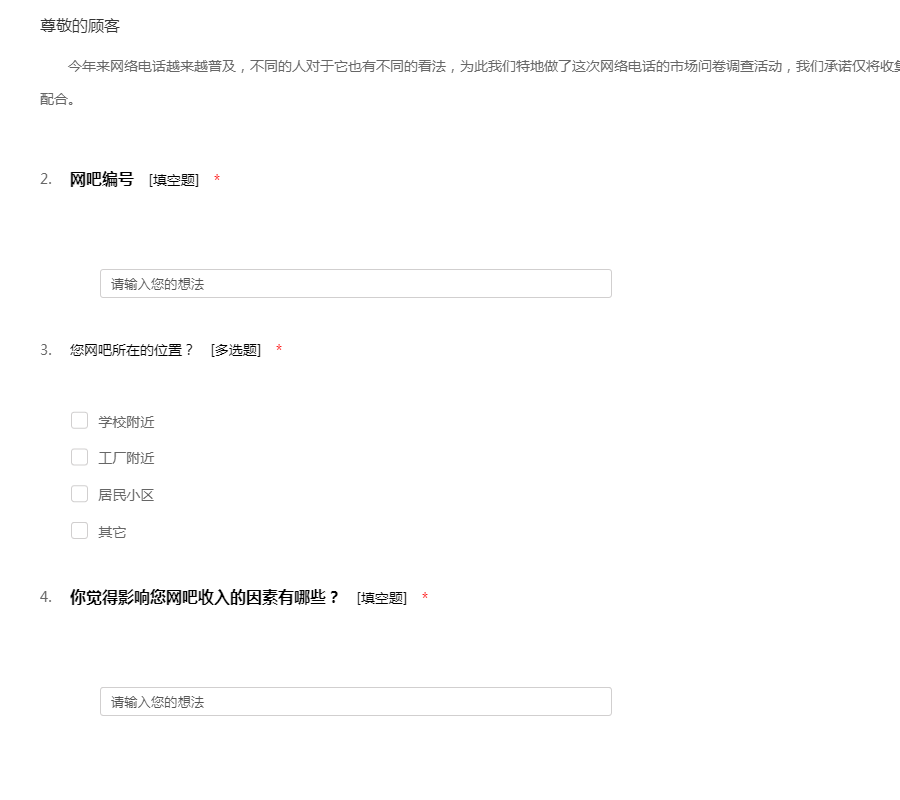 今年来网络电话越来越普及,不同的人对于它也有不同的看法,为此我们特地做了这次网络电话的市场问卷调查活动,我们承诺仅将收集到的信息用作市场调查研究,感谢您的配合。
