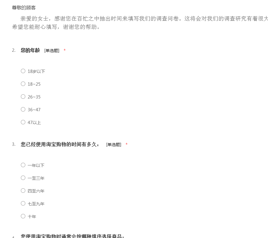 亲爱的女士,感谢您在百忙之中抽出时间来填写我们的调查问卷。这将会对我们的调查研究有着很大的帮助,在选项上打钩即可。希望您能耐心填写,谢谢您的帮助。