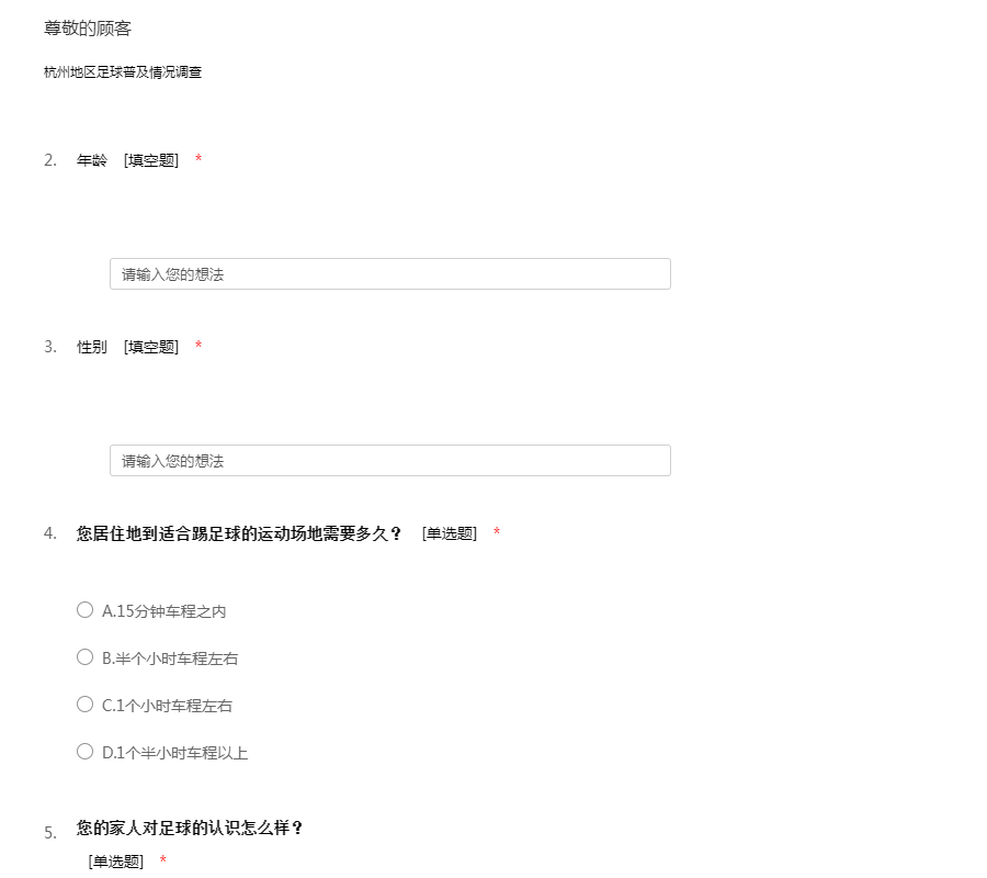 杭州地区足球普及情况调查问卷
