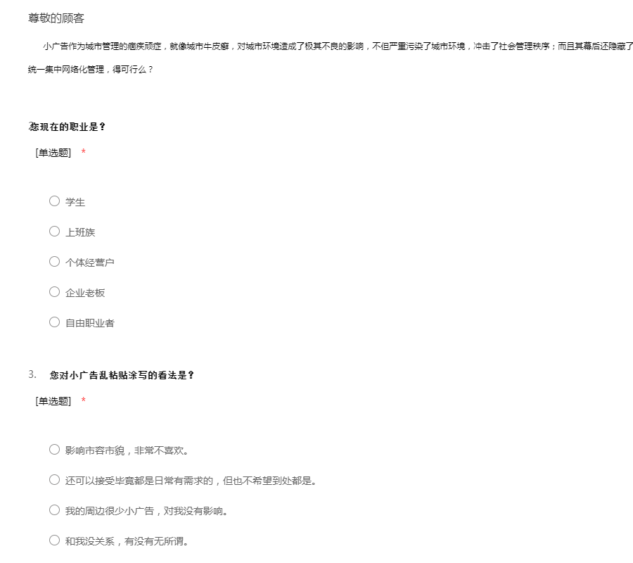 小广告乱粘贴乱涂写问卷调查