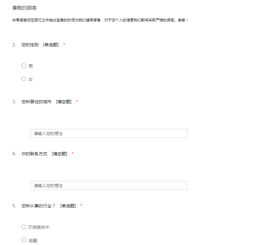 非常感谢您在百忙之中抽出宝贵的时间为我们填写答卷,对于您个人的信息我们都将采取严格的保密。谢谢!