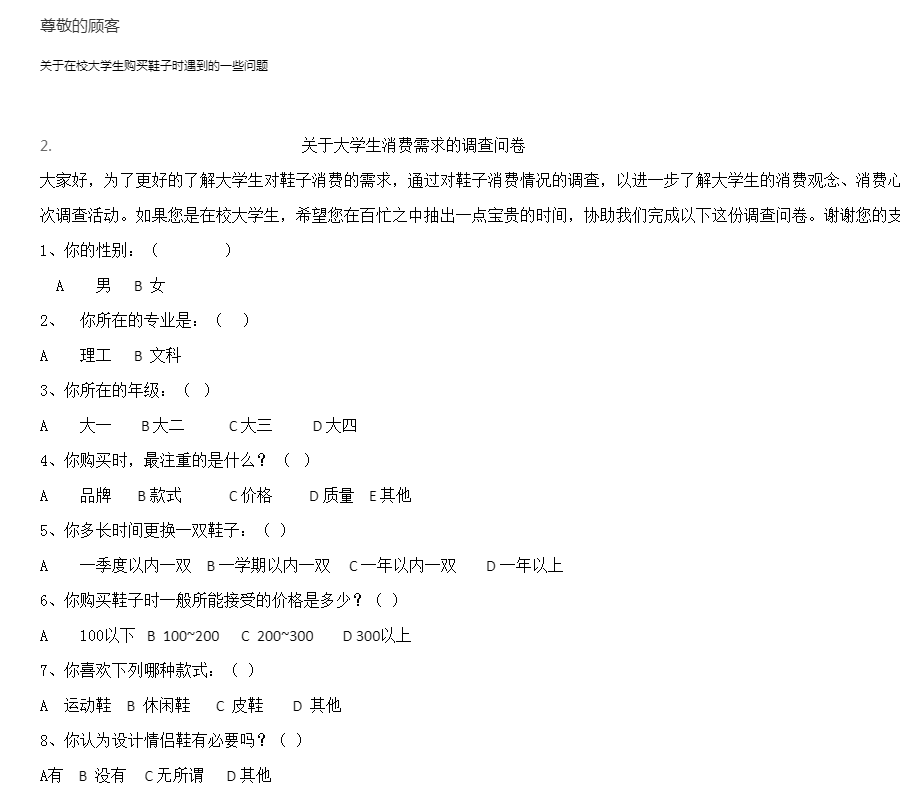 本次研究问卷是对于品牌鞋的需求进行调查,请结合自己的实际就是回答,谢谢您的支持。