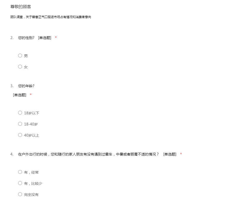 团队调查,关于藿香正气口服液市场占有情况和消费者意向