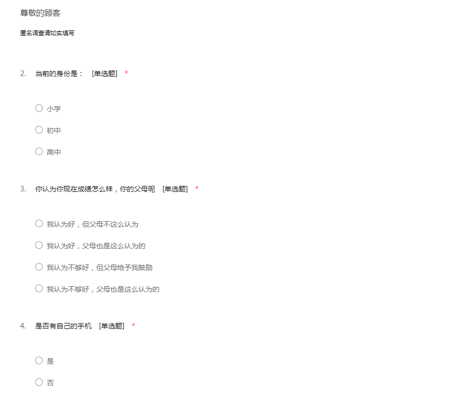 本调查匿名,请放心填写