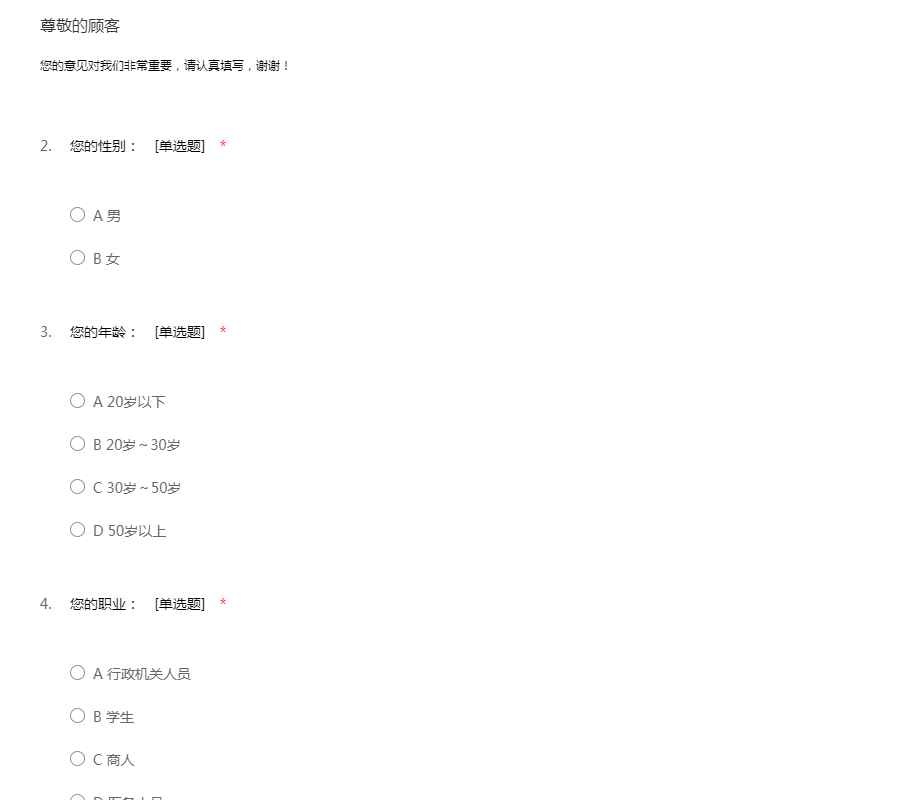 为了给您提供更好的服务,希望您能抽出几分钟时间,将您的感受和建议告诉我们,我们非常重视每位用户的宝贵意见,期待您的参与!现在我们就马上开始吧!