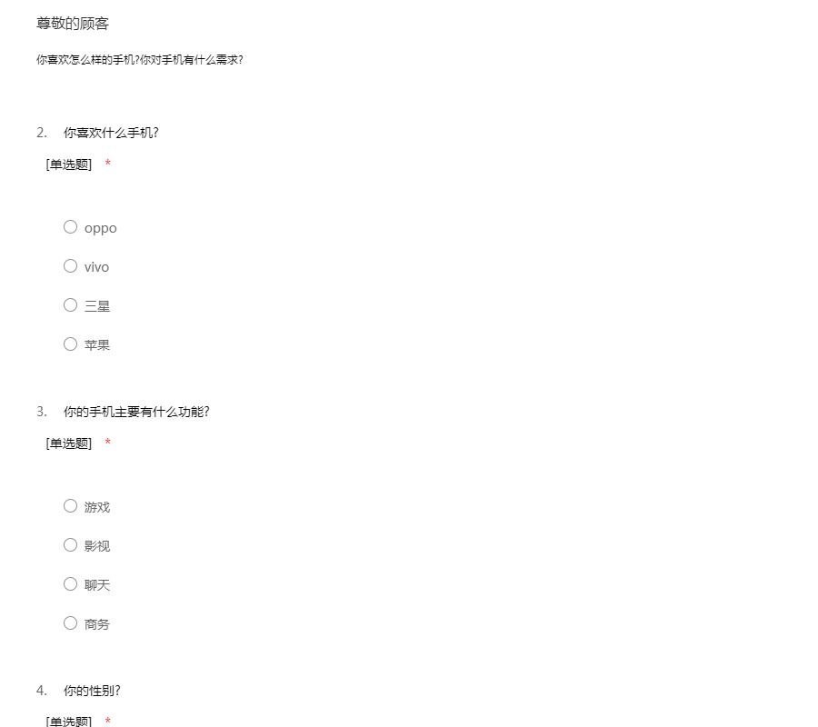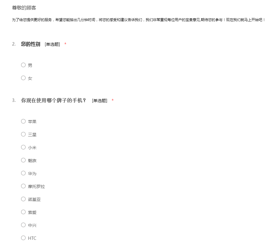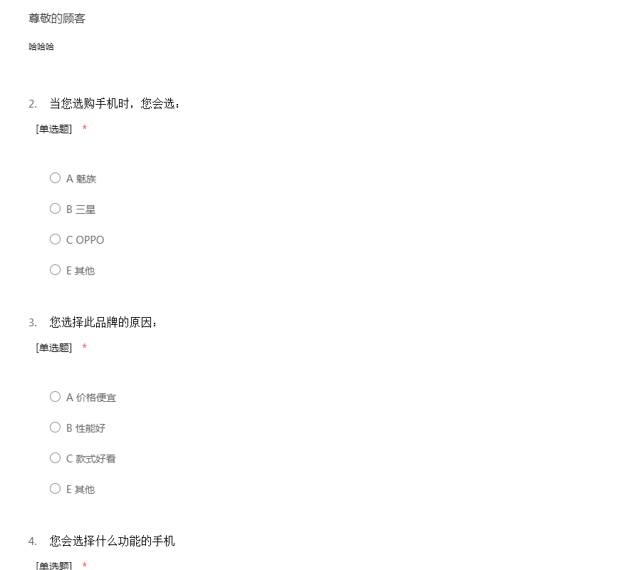 您好!为了更好的了解手机消费的需求我们特地展开了此次手机使用习惯调查活动。希望您在百忙之中抽出一点宝贵的时间协助我们完成以下这份调查问卷。谢谢您的合作!