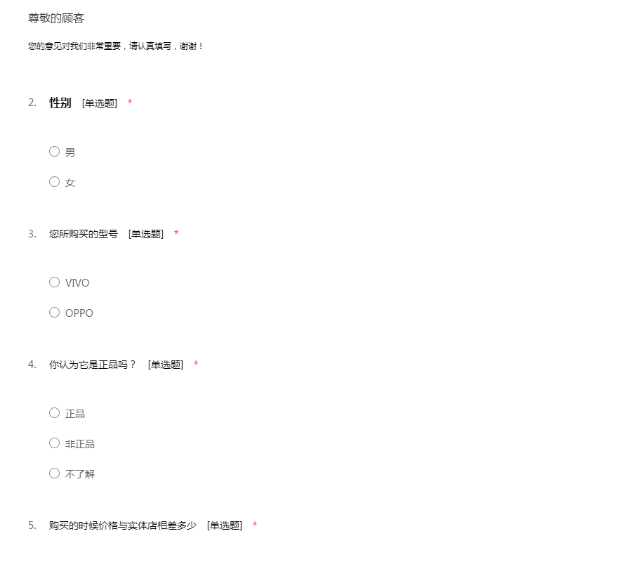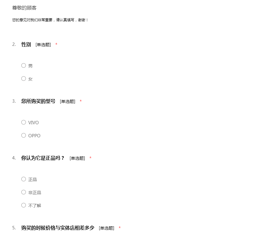 vivo/OPPO手机售后调查问卷