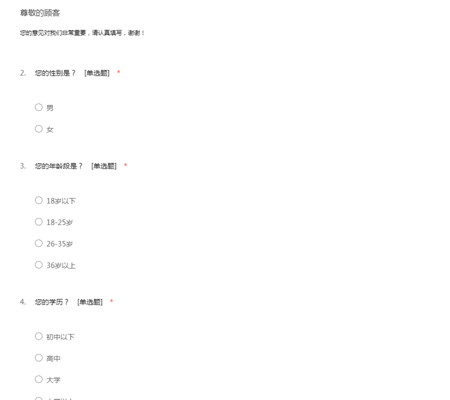 您的意见对我们非常重要,请认真填写,谢谢!