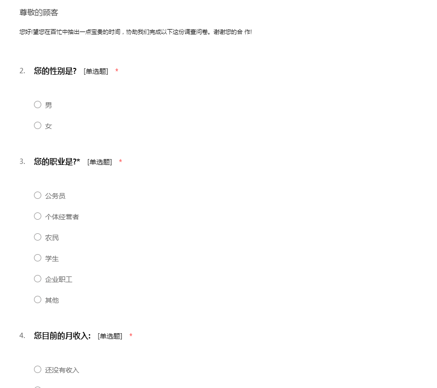 您好!望您在百忙中抽出一点宝贵的时间,协助我们完成以下这份调查问卷。谢谢您的合 作!