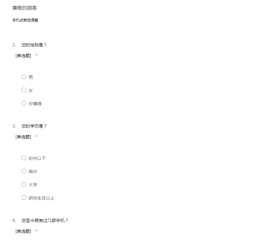 手机使用习惯调查问卷