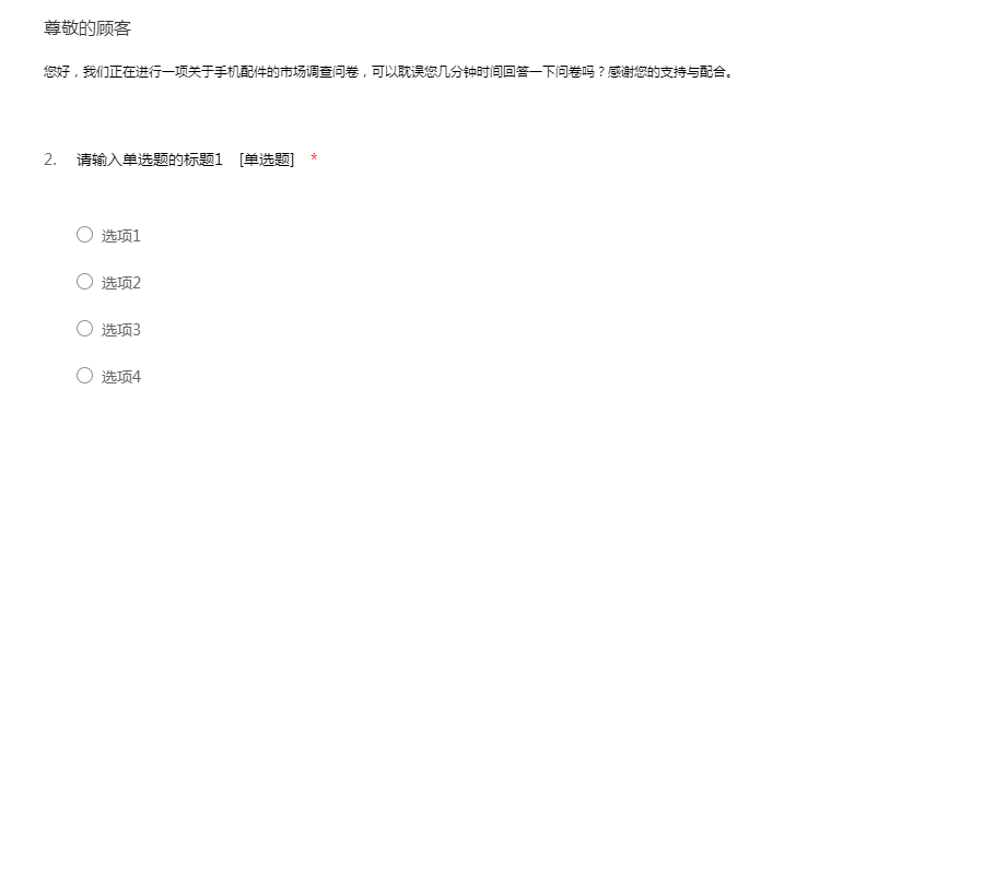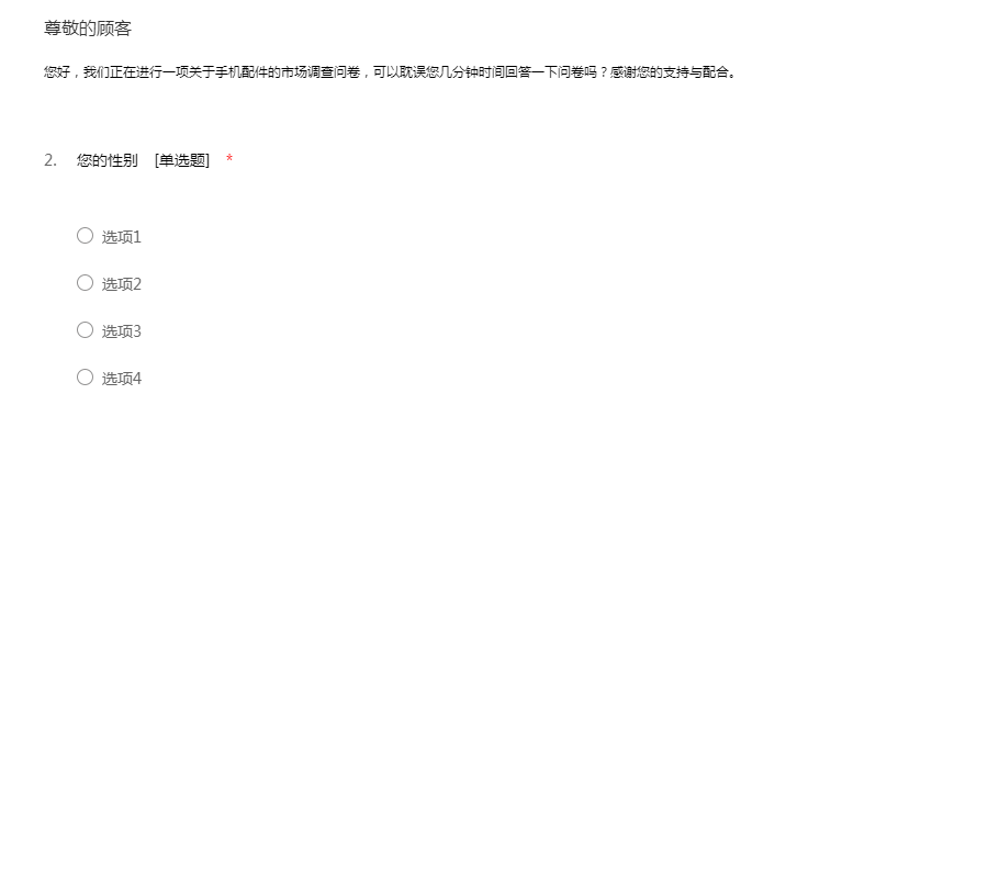 您好,我们正在进行一项关于手机配件的市场调查问卷,可以耽误您几分钟时间回答一下问卷吗?感谢您的支持与配合。