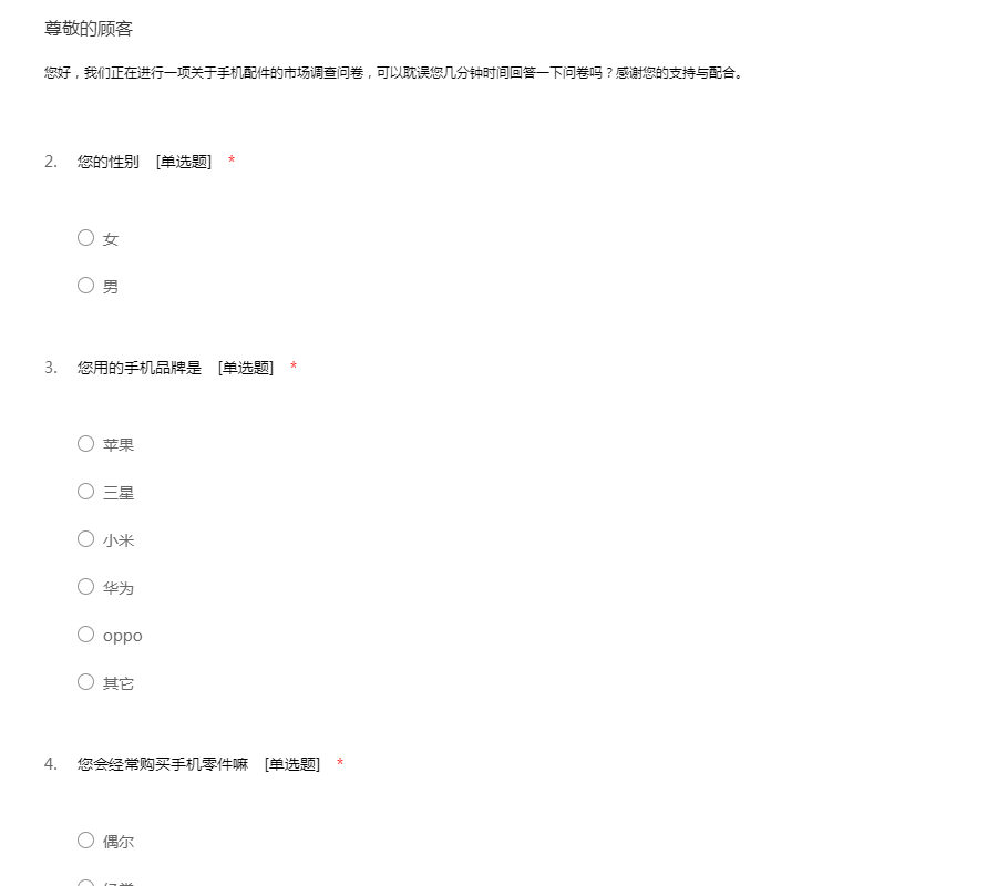 手机配件市场调查问卷