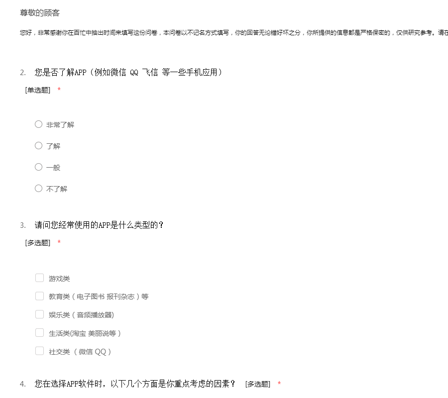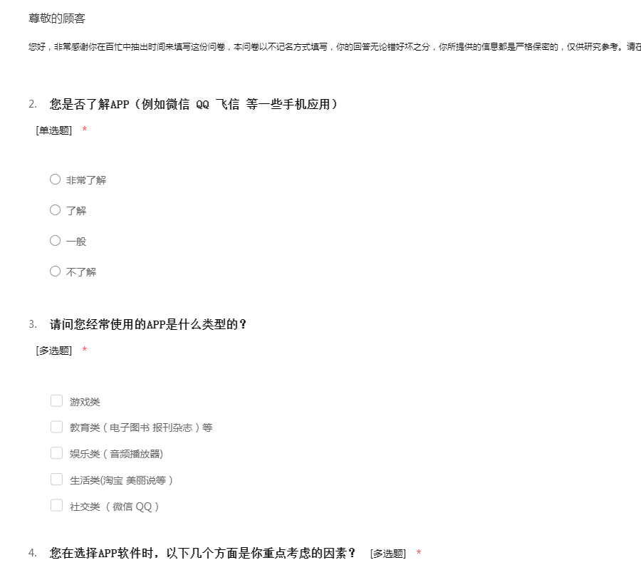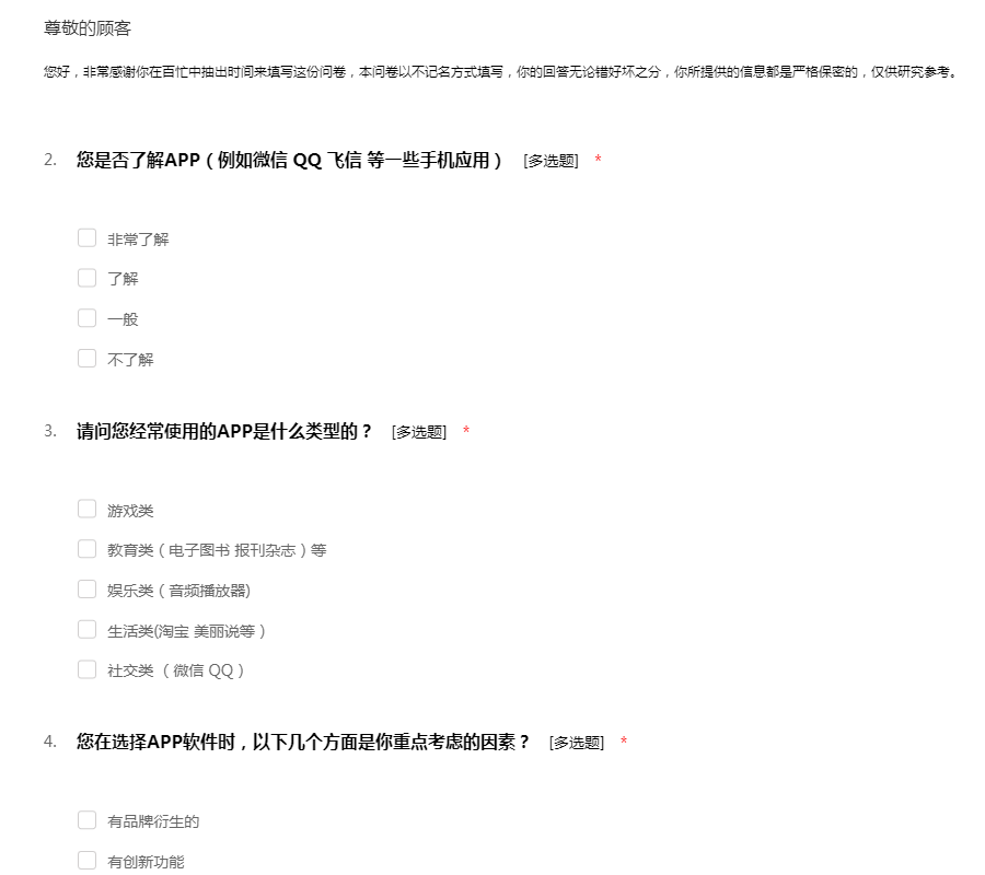 手机app调查问卷