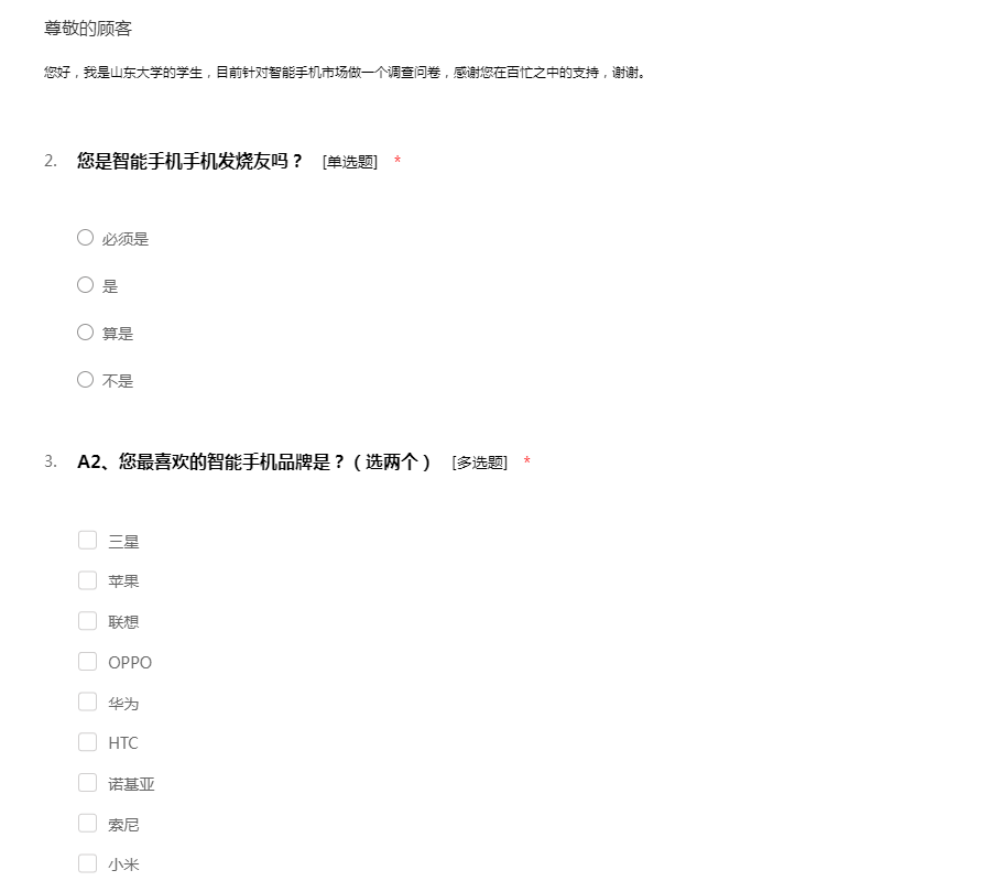 三星手机市场调查问卷