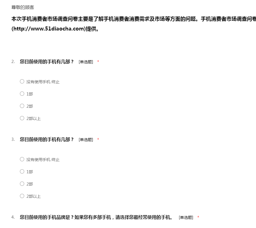 感谢您参与“三星手机市场调查问卷”,本次调查旨在了解消费者购买三星手机的市场份额,调查所得的结果对您的工作和生活不会带来任何不良影响,请您根据自己的实际情况放心填写,51调查网感谢您的配合!