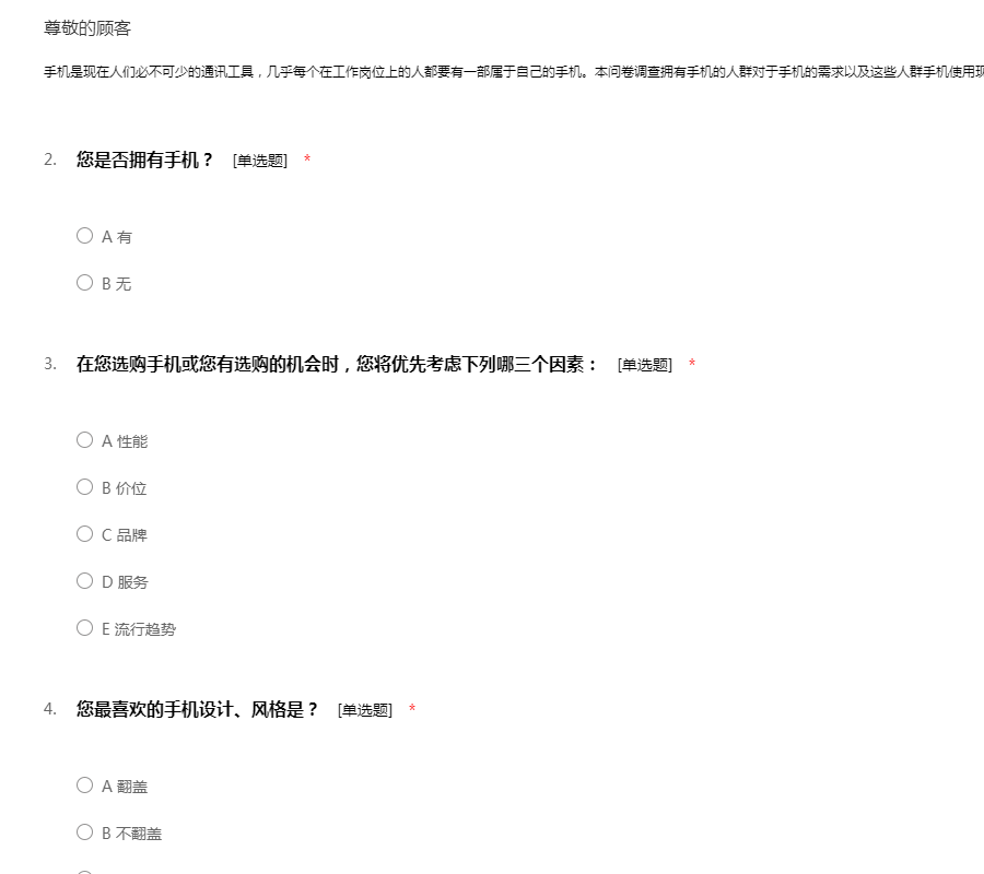 三星手机市场调查问卷