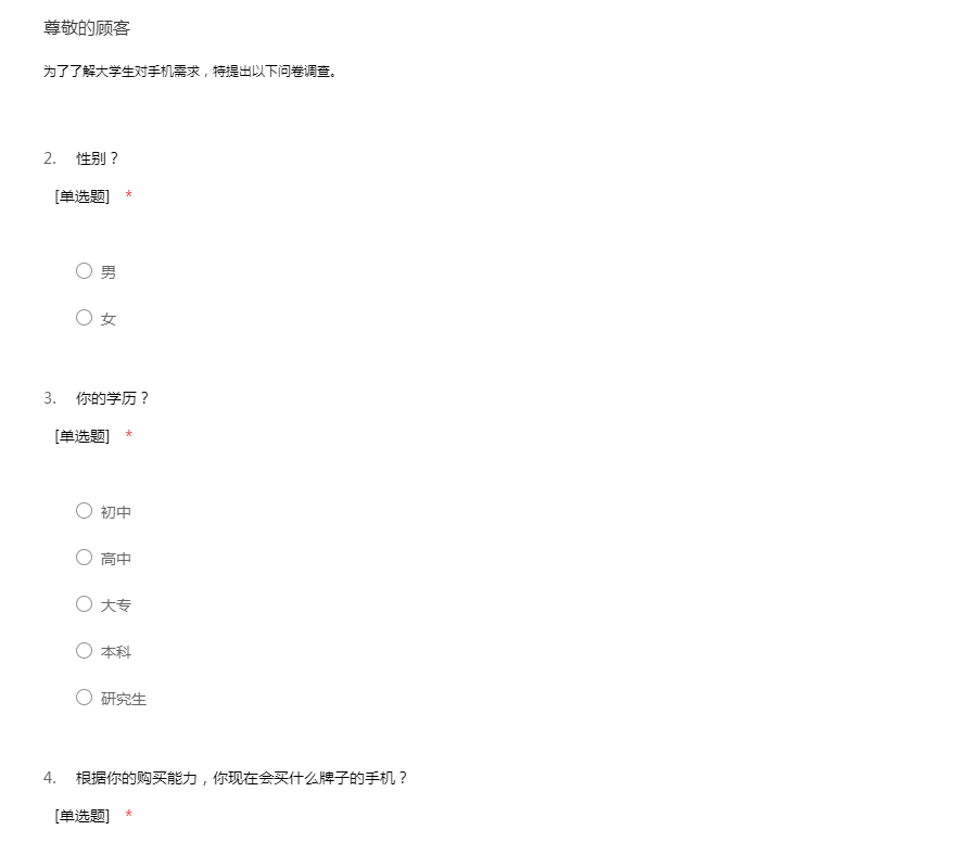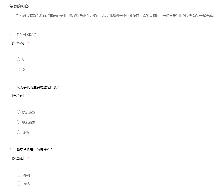 为了了解大学生对手机需求,特提出以下问卷调查。