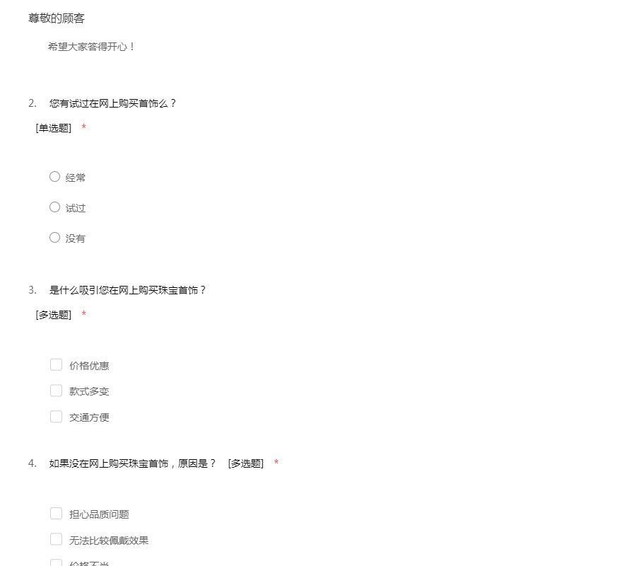 珠宝饰品调查问卷