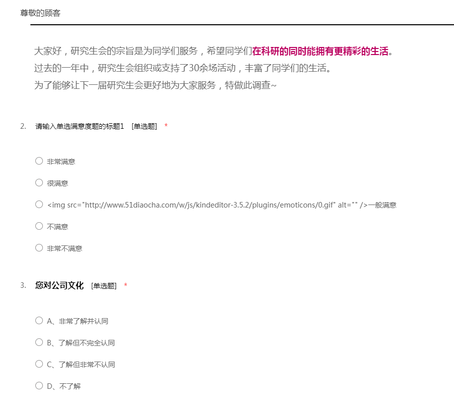 感谢您参与“服务满意度问卷调查”,本次调查主要是为了促进我们持续的优化和改进服务质量,调查所得的结果对您的工作和生活不会带来任何不良影响,请您根据自己的实际情况放心填写,51调查网感谢您的配合!
