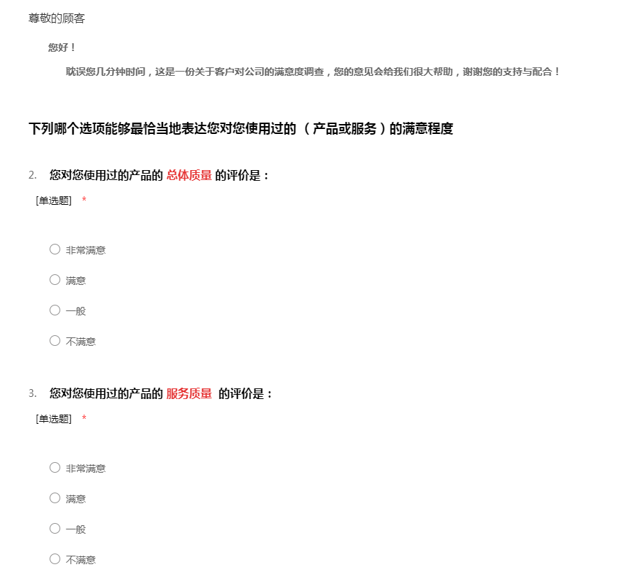 首页 > 问卷模板 > 满意度 > 企业满意度