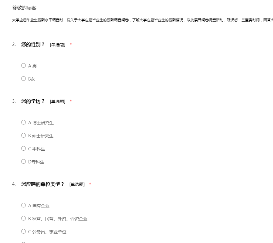 大学应届毕业生薪酬水平调查时一份关于大学应届毕业生的薪酬调查问卷,了解大学应届毕业生的薪酬情况,以此展开问卷调查活动,耽误您一些宝贵时间,回答大学应届毕业生调查问卷,谢谢您的合作。