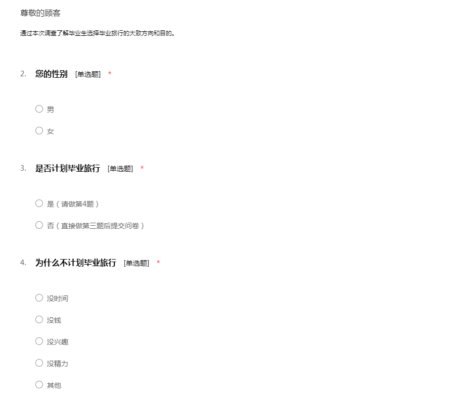 通过本次调查了解毕业生选择毕业旅行的大致方向和目的。