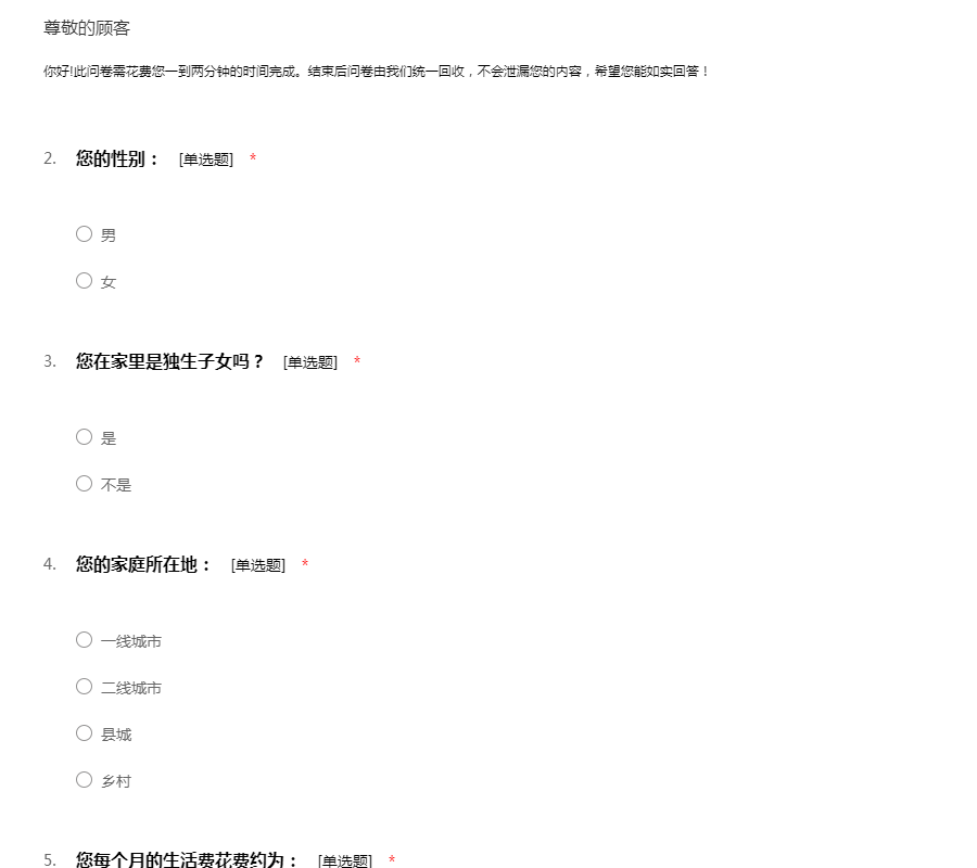 你好!此问卷需花费您一到两分钟的时间完成。结束后问卷由我们统一回收,不会泄漏您的内容,希望您能如实回答!