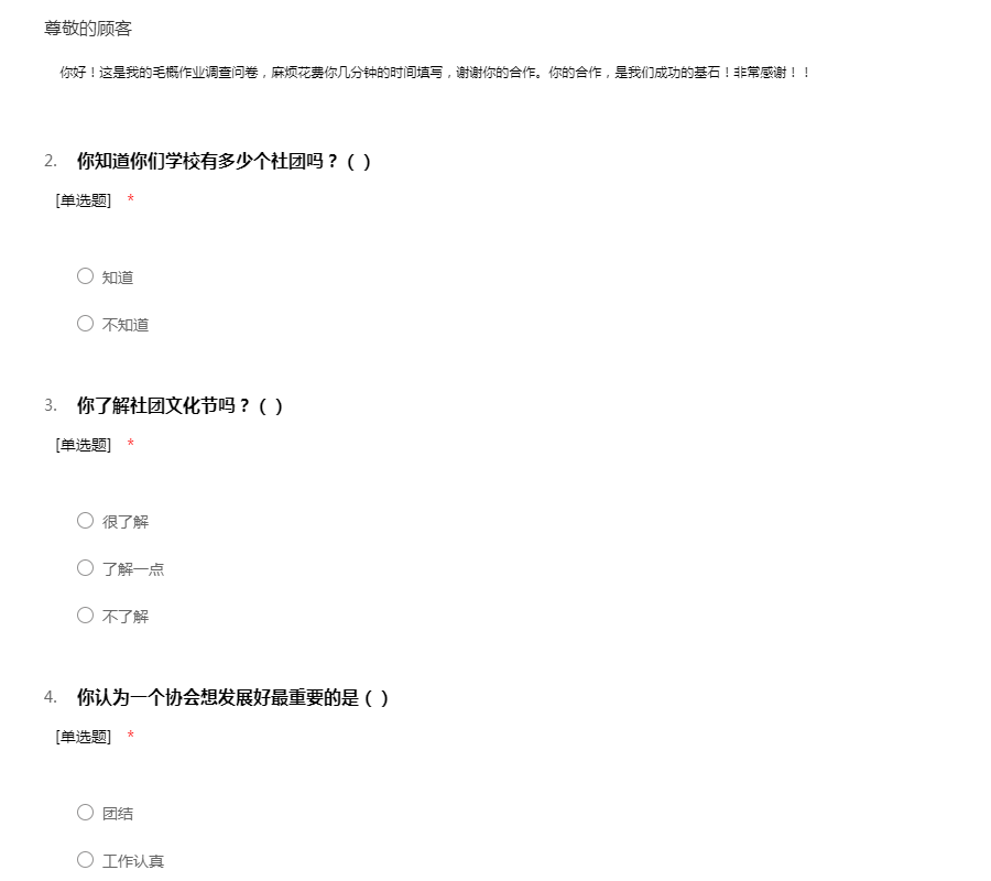 你好!这是我的毛概作业调查问卷,麻烦花费你几分钟的时间填写,谢谢你的合作。你的合作,是我们成功的基石!非常感谢!!