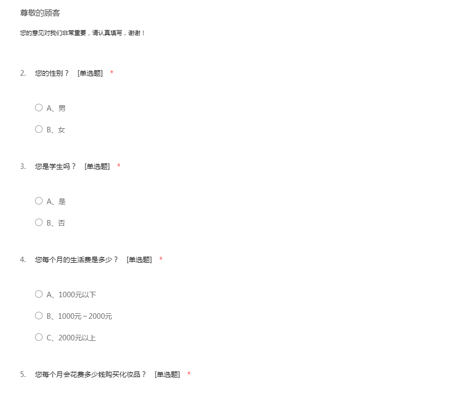 感谢您能抽空完成以下问卷,请如实作答。