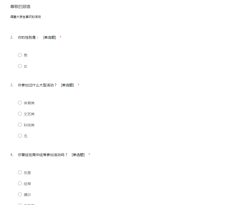 大学生问卷调查