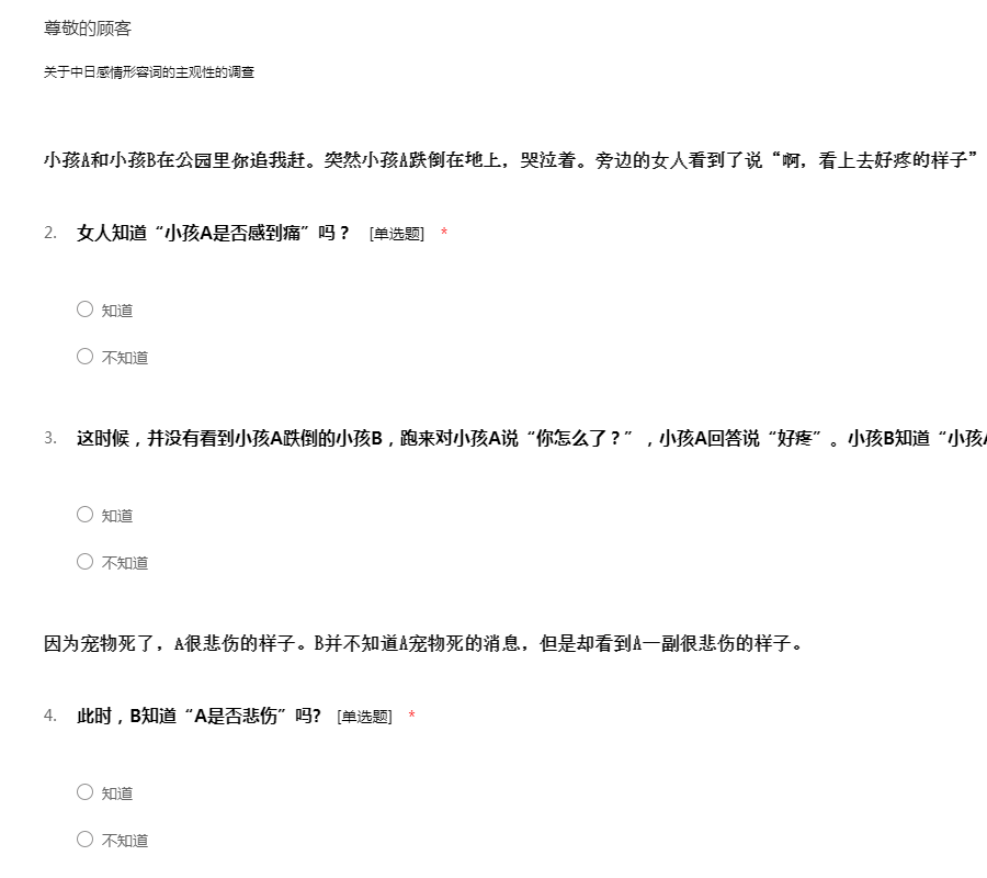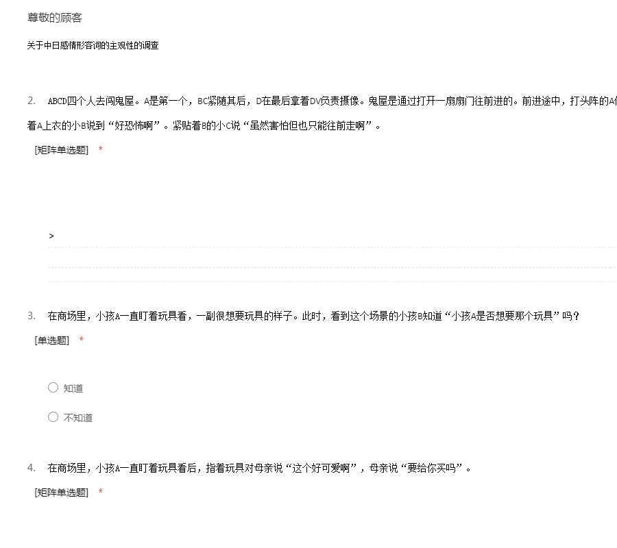 关于感情形容词的主观性的调查