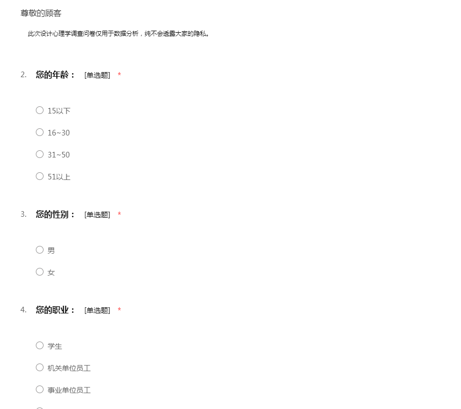 此次心理测试调查问卷仅用于数据分析,纯不会透露大家的隐私。