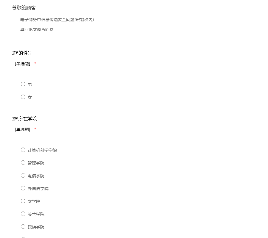 电子商务中信息传递安全问题研究(校内) 毕业论文调查问卷