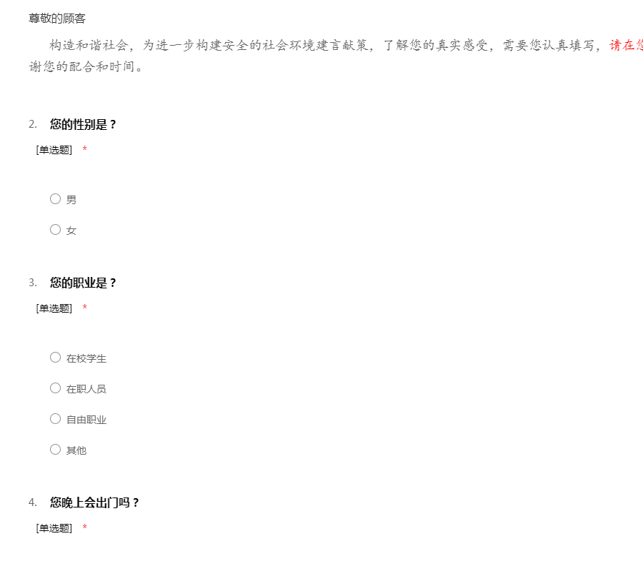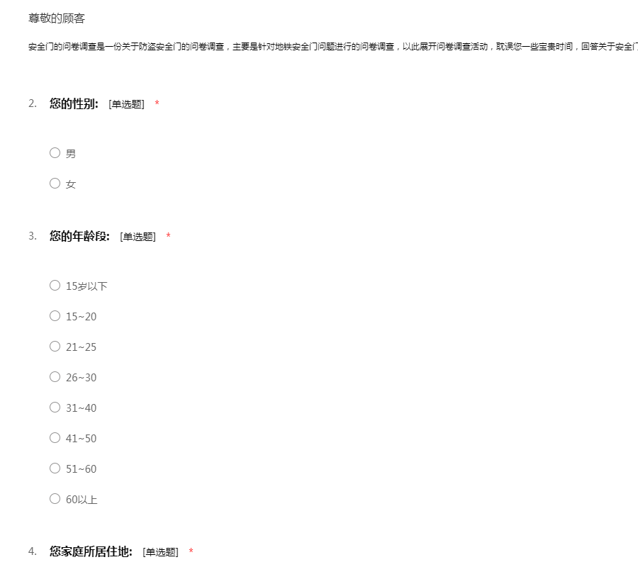 安全门调查问卷