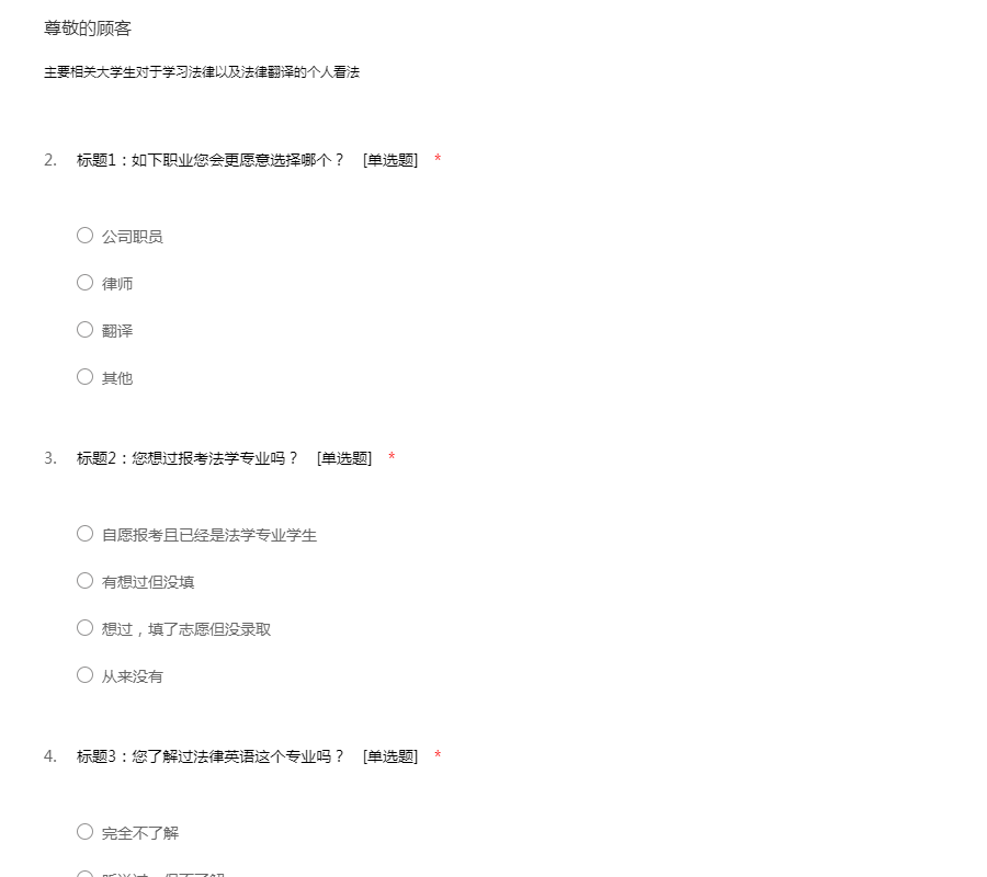 主要相关大学生对于学习法律以及法律翻译的个人看法